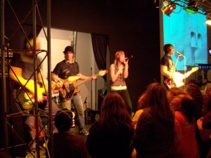 We also ended up landing Inhabited to play. They are a group who has had national exposure, played some really big venues, and ended up playing for us in our little room for our 70 people. It was cool. They were the epitomy of professionalism. Yet, they were crystal clear about their faith, and showed so much love to everyone there as well. I so appreciated these guys. Sarah completely laid her heart, and the truth of Jesus, on the line for the kids. The girl can preach! Here they are: